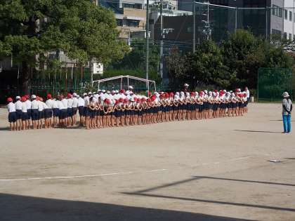 56年生も運動場に出て、組体操の練習をしました。