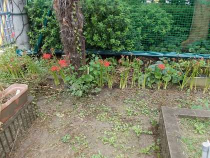学習園の隅に彼岸花を見つけました。毎年、このお彼岸の時期になると咲き始めます。不思議ですね。