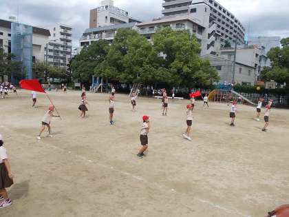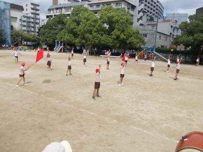 隊形移動や声の出し方など、「応援団らしく」なってきました。よく頑張っています。運動会を盛り上げてくださいね。