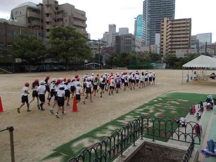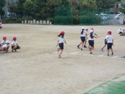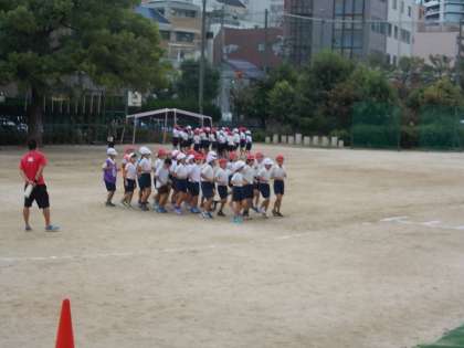 リレーの練習です。4年生は一人半周なので、コーナートップが気ぜわしいです。