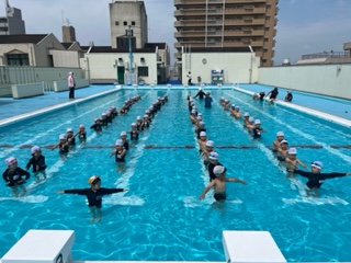 プールでのルールや、バディの確認、水なれやどうぶつまねっこなどをして、あっという間に1時間が終わりました。