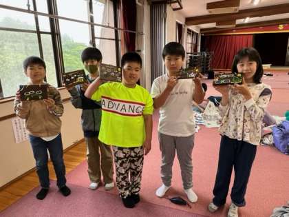 悪天候のためプログラムの順を入れ替え、焼き板作りに取り組みました。