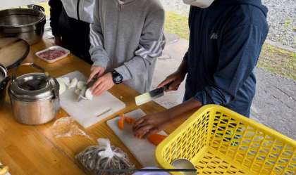 飯盒炊爨で、カレー作りをしました。