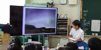 夏は15〜20度、冬はマイナス20度にもなること、家の近くからオーロラが見えること、学校では手作りクッキーなどを売って修学旅行の費用にすることなど、楽しい話題をたくさん話してくれました。