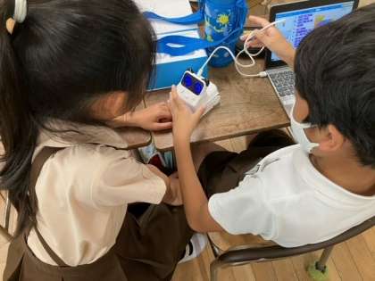9月5日(火)1,2時間目に4年生、5,6時間目に6年生が「プログラミングロボットcodey rockyを動かしてみよう」と題して、プログラムの作成をしました。
