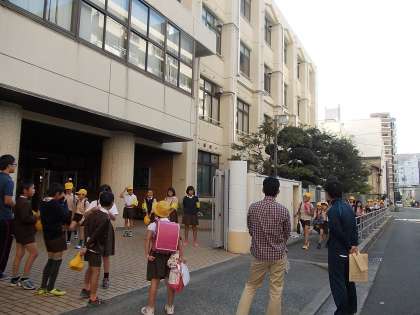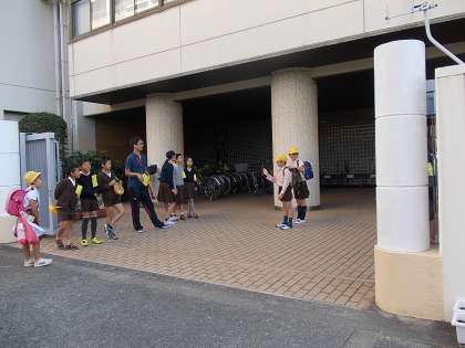 登校した代表委員の児童から順番に、校門に立ってあいさつ運動を盛り上げます。