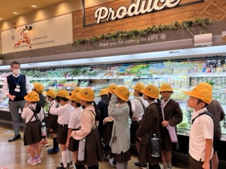 社会科のスーパーマーケットについての学習を深めるために、ライフ大淀中店に社会見学に行きました。