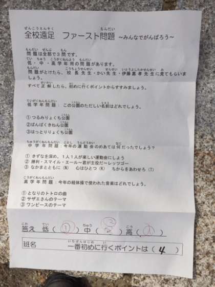 その後、スタート問題が配られました。正解した班からスタートです。(ちょっと簡単すぎたかな?)