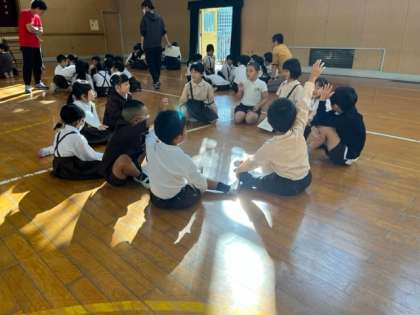 今日は、遠足に向けてなかよし班で集まって自己紹介したり、どんな遊びをするか相談したりしました。2年生がリーダーシップをとり、上手に班をまとめていました。