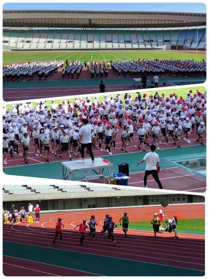ヤンマースタジアム長居に北区の小学校6年生が集まり、スポーツ交歓会が行われました。