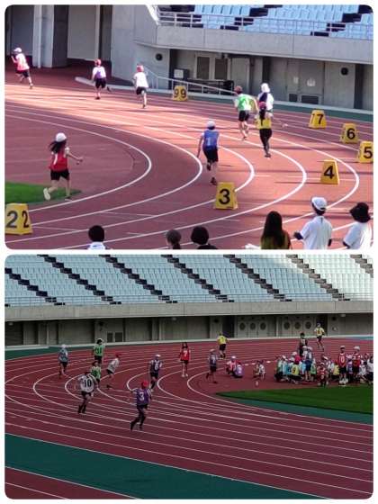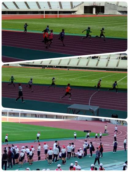 他校の6年生と競い合い、応援の声がスタジアムに響きました。