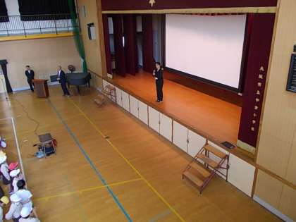 児童朝会のあと、校長先生から新しい先生の紹介がありました。特別支援教育サポーターの前田裕美先生です。