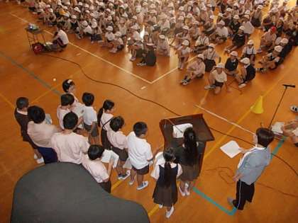 それから、プロジェクターを使って紙芝居「くいしんぼ うさぎ」をしました。