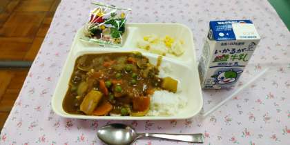 <ハンバーグカレーライス カリフラワーのピクルス 豆こんぶ 牛乳>