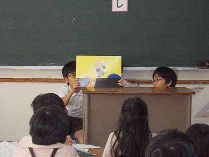 11月5日まで中津小学校の読書週間です。今日は、12年生の教室に紙芝居にいきました。