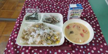 <れんこんのちらしずし ぞう煮 ごまめ 牛乳>