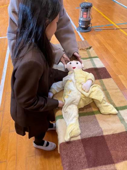 妊婦さんのお腹を触らせてもらったり、赤ちゃん人形を抱っこしたり、5キログラムもある妊婦ジャケットを着用したりして喜びも大変さもたくさん感じることができました。子どもたちにとってどれも貴重な経験になりました。