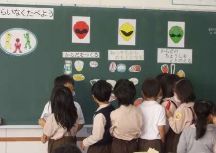 赤・黄・緑レンジャーにそれぞれのはたらきを教えてもらいました。
