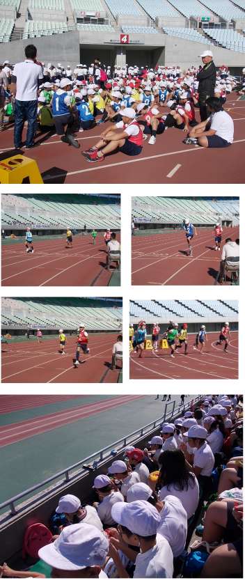 地面が「タータン」といって、ゴムでできているので、その感触に感動していました。また、お天気がとてもよかったので、赤っぽいオレンジ色がくつについてしまい、普段経験できないことを満喫していました。