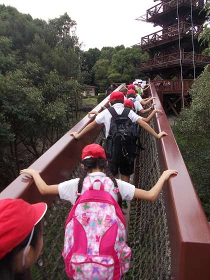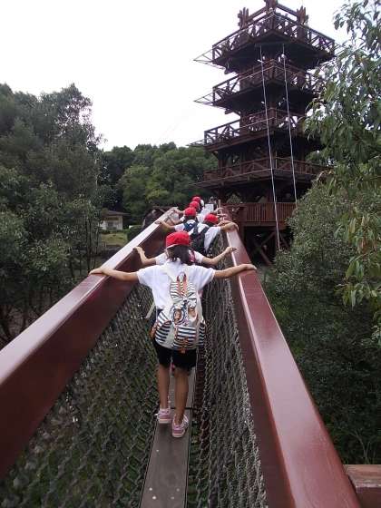 ソラードの途中です。つり橋がありました。ドキドキしながら歩いていた子もいました。ゴール地点は、展望台がありました。