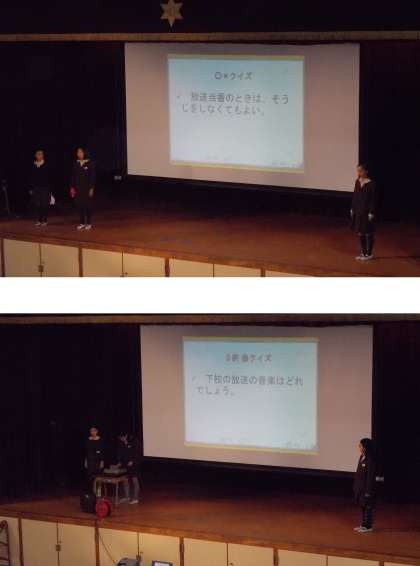 放送委員会にまつわる仕事などのクイズを2択及び3択で披露しました。