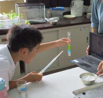 1学期に学習する内容をすべて終わり、ここ最近では気温が高くエアコンのある教室で座学メインだったこともあり、久しぶりに理科室で実験を行うことにしました。
