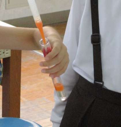 「好きな色を使って試験管内に3つの層を作る」をしました。