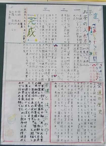 5年2組では「和の文化」についてそれぞれが調べたいテーマを決め、グループで新聞を作り、発表会を行いまいた。