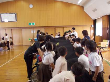 後半は、全員が多目的ホールに集まり、グループ対抗の