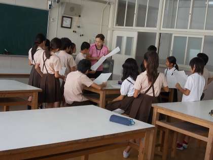 児童会だよりを全クラスに配るためのミーティングをしている、4年生以上の学級代表です。