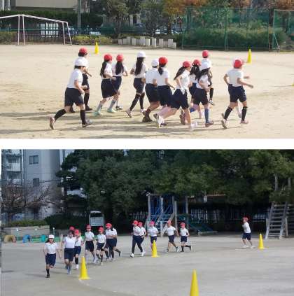 5年生は運動場20周、2200メートルです。