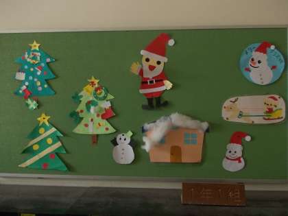 1年生の靴箱の上の掲示板です。みんなは、どんなものをサンタさんにお願いしてるのかな。