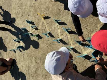 はね返した日光は、どのように進むのかを鏡を使って実験しました。地面に鏡をおき、光の進み方を調べたり、はね返した日光をつないだりして光の進み方を調べました。はね返した日光は、まっすぐに進むことがわかりました。