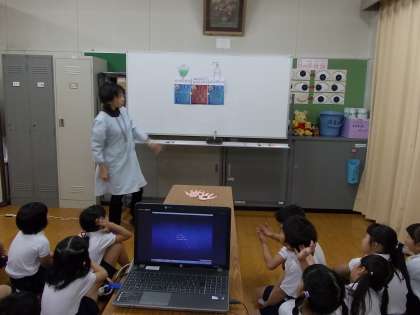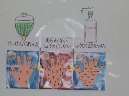 インフルエンザなどのウィルスがどんなふうに広がっていくのかを実験したビデオを見ました。