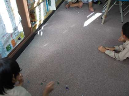 ビー玉やおはじきをしているグループがありました。のぞいてみると・・・