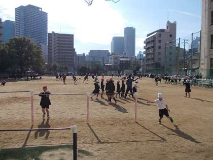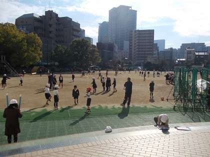 子どもは「風の子」、元気です。20分休憩時間は、運動場が満員になります。