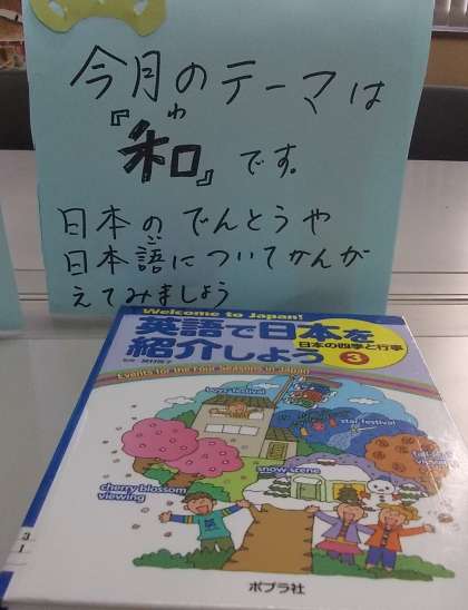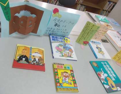今年の申年にちなんだ飾り付けや、今月のテーマ「和」に関するさまざまな本を紹介してくれています。