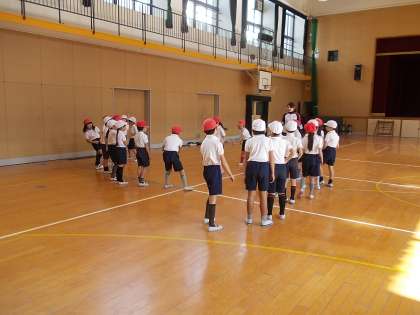なわとび大会に向けて体育の時間にも練習をしています。学級で掛け声を合わせて、気持ちを一つにしてがんばっています。ちなみにこの時は2分間で116回の新記録を達成しました。