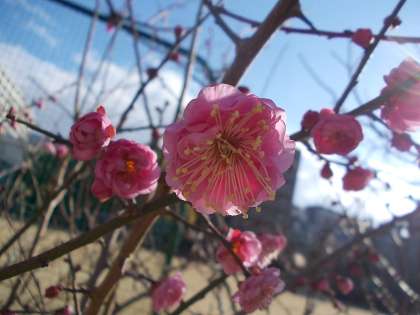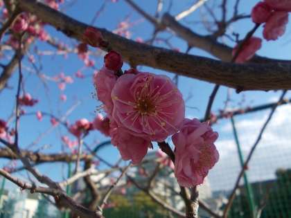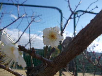 陽ざしに誘われて、卒業記念樹の紅梅白梅がほころび始めました。