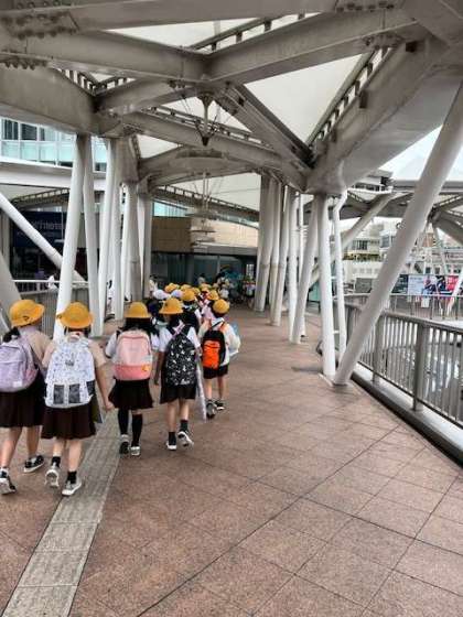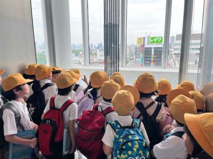 今日は、社会科の「大阪市のようす」の学習で、環状線一周とあべのハルカス展望台に行っています。