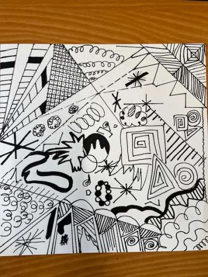 今日の図工で、『線から生まれる世界』というテーマで、マイネームを使って線を描きました。
