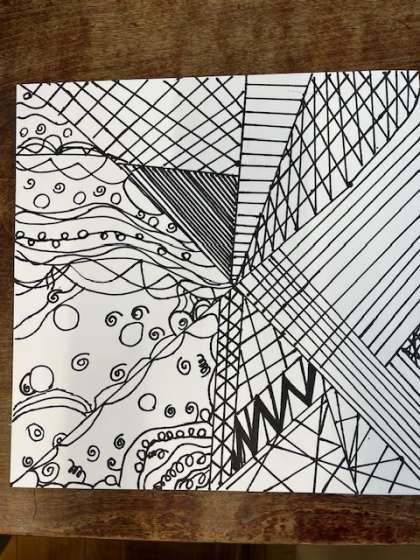 直線、曲線を使い、自分の世界を広げていきました。仕上がるのが楽しみです!