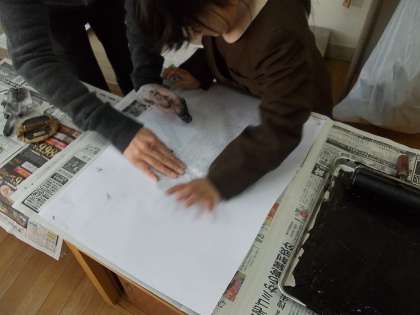 初めての紙版画に取り組みました。どう刷れているかわくわくどきどきです。