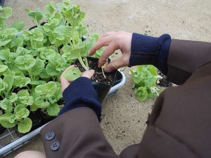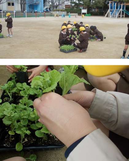 3年生の苗を丁寧に扱う手がとてもかわいいです。