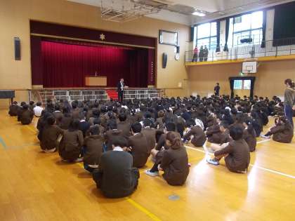 今日は全校朝会で、校長先生からその作文を紹介していただきました。みんな、静かに聞いていました。