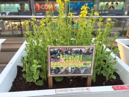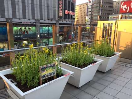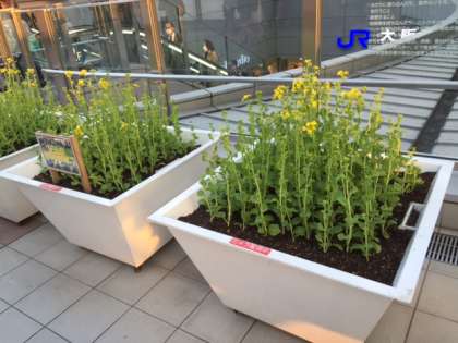 金曜日に出荷した菜の花が、ステーションシティのカリヨン広場を彩っています。
