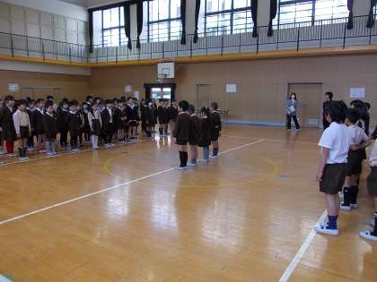 3年生が「楽しんでください。」とはじめのあいさつをしています。