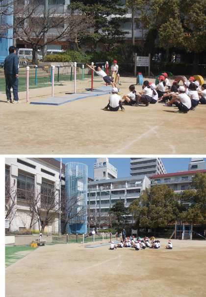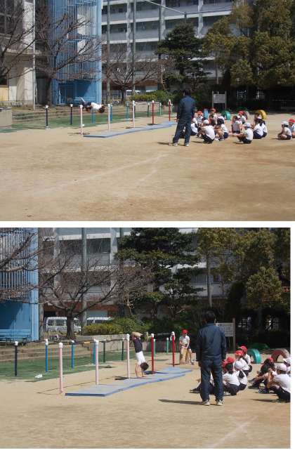 これまでの練習の成果として、鉄棒の技を発表しました。一人一人が自分が頑張ってきた技を披露しました。こつこつと根気よく頑張りぬく力を養うのには、鉄棒が最適です。いつまでも拍手が続いていました。