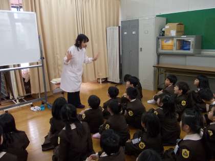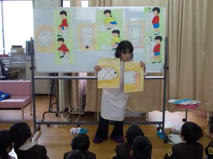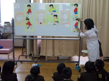 1年生が、保健室でトイレの使い方についてお話を聞きました。