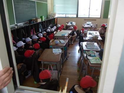 4階の教室の中で、校長先生からお話がありました。